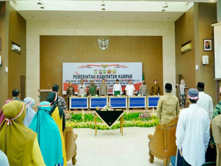 Bangkinang Kota : Pj Bupati Kampar menyaksikan Deklarasi dan lepas Bai’at massal simpatisan Jama’ah Islamiyah (JI) Kabupaten Kampar dan pengucapan Sumpah Setia Kepada Negara Kesatuan Republik Indonesia (NKRI) yang diikuti sebanyak 250 dari Kecamatan Tapung.